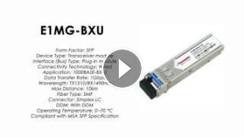 Brocade/Foundry Compatible 1000Base-BXU SFP optic, SMF, TX-1310nm, RX-1490nm, LC connector, 10km. Must pair with E1MG-BXD-CO
