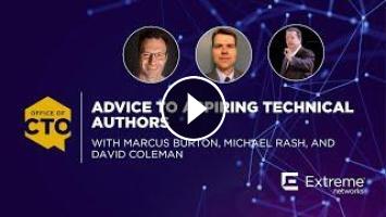 Three technical authors from the Office at the CTO at Extreme Networks offer quick insights on technical writing. Watch the video for tips from Marcus Burton, Michael Rash, and David Coleman.