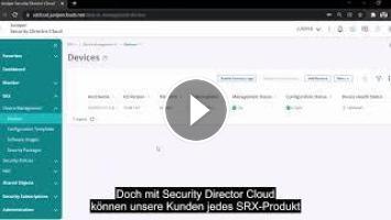 In diesem Video wird Juniper Security Director Cloud vorgestellt. Sehen Sie, wie Security Director Cloud die Bereitstellung und Verwaltung der SRX-Firewalls von Juniper simplifiziert und die Sicherheit in Ihrem Netzwerk koordiniert. Weitere Infos finden Sie unter https://www.juniper.net/de/de/products/security/security-director-network-security-management.html