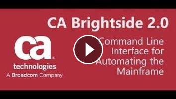 Simplify mainframe interaction with CA Brightside. Brightside automates development, test and maintenance of mainframe applications and systems by providing you with commands that execute tasks on the z/OS side. Brightside's commands are client-side and execute natively on your dev workstation or CI automation box, similar to other popular CLIs like aws-cli. This allows you to integrate Brightside commands with your scripting language, or test or build automation framework of choice including Shell/Bash, Python, JavaScript, Mocha.JS, Gulp and more.