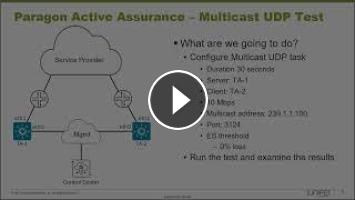 The Paragon Active Assurance – Multicast UDP Test video covers how to configure the Multicast UDP task with a test using the Control Center Web interface. This video is most appropriate for users who are new to working with Paragon Active Assurance.