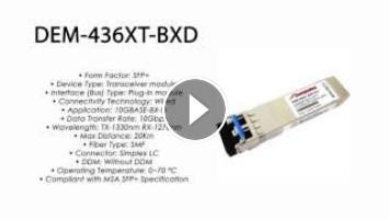 D-Link Compatible 10Gbase-BX-D WDM SFP+, 20km, TX-1330nm RX-1270nm, Singlemode, Simplex LC Connector. Must pair with DEM-436XT-BXU-CO