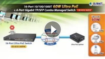 PLANET innovatively developed GS-4210-16UP4C as the first 16-port, 60-watt ultra PoE managed switch compliant with the latest international IEEE802.3bt standard to provide 60-watt power per port to powered devices.