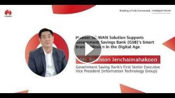 Watch Mr. Boonson Jenchaimahakoon, GSB's First Senior Executive Vice President, share how Huawei SD-WAN solution is helping GSB achieve its smart branch mission in the digital age. With Huawei's cutting-edge technology, GSB is able to build a foundation for a strong communication network and be confident with whatever technology will come up in the future. #IPonEverything #SDWAN
