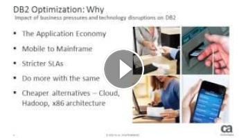 Are you losing sleep over the need to continually improve DB2 database performance? Database optimization tasks can help increase performance, scalability, platform support, standards compliance, and usability. But these techniques can be difficult to process, build, test, and deploy. Rest assured there is a solution. Discover how you can optimize performance and simplify operations to unlock the power and value of your DB2 data, while reducing costs and risk. Join CA Technologies hosts - Vikas Sinha, Sr Vice President, Database Management and DJ Joshi, Sr Principal Product Manager, Database Management - as they reveal new enhancements and features such as zIIP exploitation and IDAA support. Is your DB2 database being used to its fullest potential? Find out in this 4-part video series.