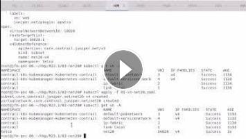 This demo of the CN2-Apstra integration shows off a demo topology of three virtual networks with mixed workloads: SRIOV workloads, normal workloads and bare-metal server-based workloads outside of the cluster. We create a virtual network and network attachment definitions (NetworkAttachmentDefinition objects) inside of Kubernetes and they are propagated automatically into Apstra where we show it in the Apstra GUI.