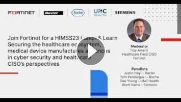 We're LIVE at #HIMSS23 in Chicago! Watch as #Fortinet's Healthcare Field CISO, Troy Ament leads a discussion on medical device manufacturers' advances in #cybersecurity and the importance of securing the healthcare ecosystem.