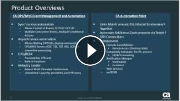 Join Michael Kiehl (kiemi01), CA OPS/MVS and CA Automation Point Product Manager, to discuss the endless integrations between CA OPS/MVS Event Management and Automation and CA Automation Point. You’ll hear about: