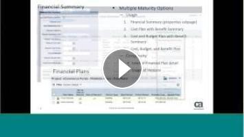 In this webcast the team will overview the broad range of Financial Management capabilities in CA PPM. This session is designed to highlight all the use cases our solution supports and gain feedback on for future more detailed webcasts cover these topics in more detail. Topics highlighted will include: capital management, financial planning and forecasting, contractor management, Revenue management, Benefit realization, ‘Bill of IT”, Investment Funding Management, etc. Participants will gain a fundamental understanding of CA PPM’s financial management capabilities and the use cases the solution is designed to positively improve.