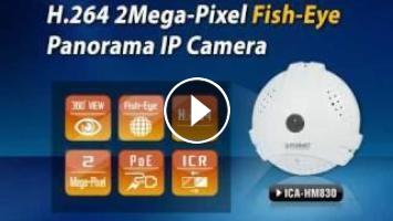 PLANET 2 Mega-Pixel Fisheye IP Camera (ICA-HM830) not only offers 360° panoramic wide angle view without blind spot by 360° fisheye lens, but also combines with a 2 Mega-Pixel sensor and H.264 video compression technology so that users can capture and transfer Full-HD images on Internet easily and fast.