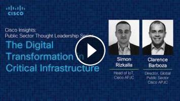 Across the Asia Pacific region, we're seeing transformation sweep across critical infrastructure as ports, roads, railways, and utilities embrace digitization. Join Clarence Barboza, Director of Global Public Sector at Cisco APJC and Simon Rizkalla, Head of IoT at Cisco APJC, as they discuss this digital transformation. Clarence and Simon address the role of IoT, potential blind spots in digitizing critical infrastructure, how to overcome them and more.