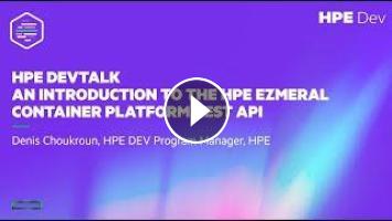 This HPE DevTalk session features Denis Choukroun from HPE. He showed how to interact with the HPE Ezmeral Container Platform programmatically through its REST API and invited the audience to learn more at https://hpedev.io.